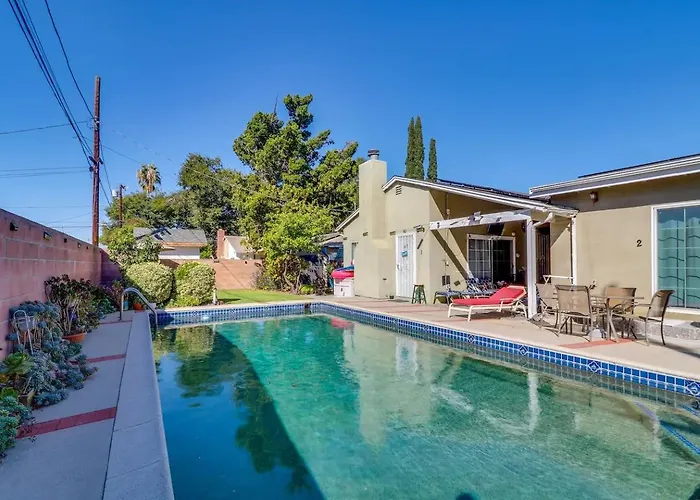 Situado en colinas, el apartamento Just The Two Of Us -Romantic Pool View And Private Entry Sleeps 2 Near Csun Csun Los Ángeles tiene vistas al jardín y está a 500 metros del Valley Park Baptist Church. Los huéspedes pueden optar por utilizar el Wi-Fi, tanto para asuntos de negocios como para entretenimiento.